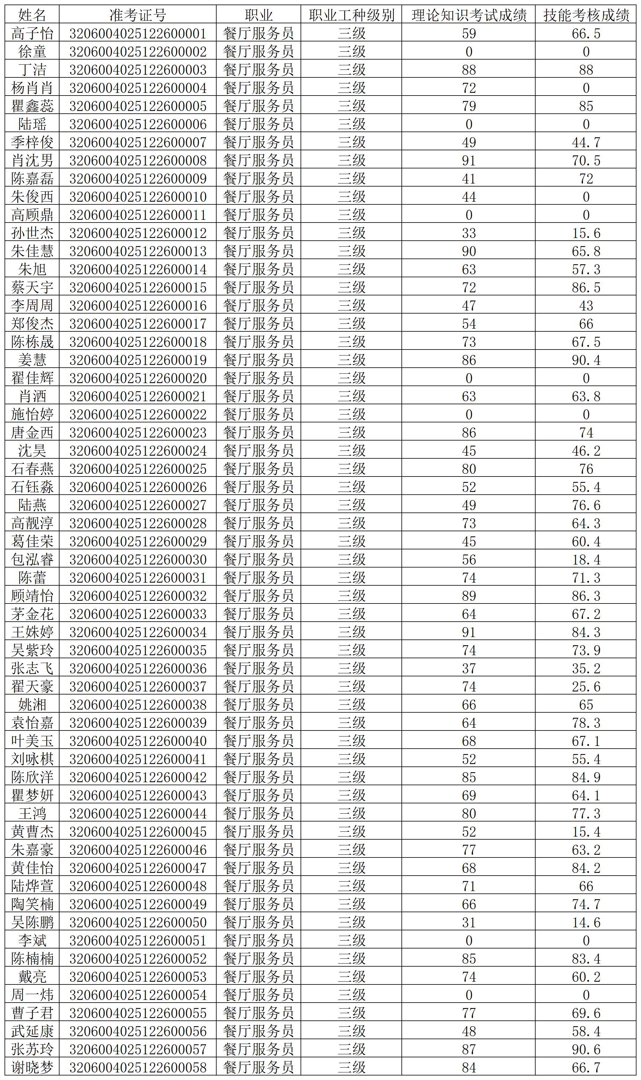 2025-32060040-00050 餐厅服务员 三级